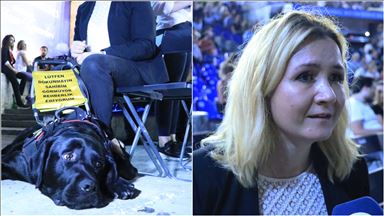 Hakkari'de mayın patlaması sonucu görme yetisini ve sağ elini kaybeden gazi Hasan Arısoy da rehber köpeği "Bobby" ile etkinliğe katıldı.