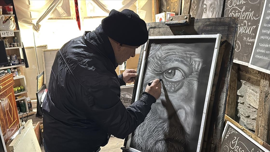 Silgiyle yaşlıları resmettiğini ama gençlere hitap eden sergi çalışması yaptığını anlatan Sakarya, gençlere kendilerini geliştirmeleri yönünde mesaj vermek istediğini söyledi.