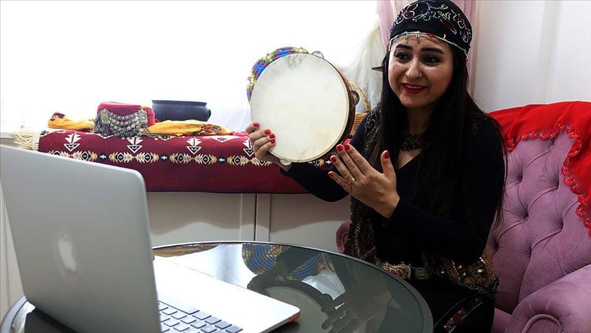 Giydiği geleneksel Anadolu kıyafetleri ve çarığıyla evinin bir köşesine döşediği eski bakır eşya ve dokuma kilimlerle adeta ortamı sahneye çeviren öğretmenin çektiği videolar, Türkiye'nin her yerinden çocukların ilgisini görüyor.