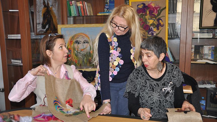 Trabzon'da yaşayan Rus gelin Liliya Gorbatsevich, çocuk yaşta babaannesinden öğrendiği keçe sanatı konusunda kadınlara eğitim veriyor.