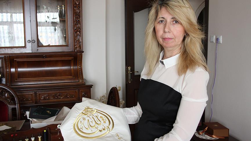 Konya'da sim sırma ve dival işleme sanatkarı Nur Dikilitaş, 6 kişilik ekibiyle Mescid-i Nebevi'deki Kutsal Emanetler için Sakal-ı Şerif bohçası ve Bilecik'teki Şeyh Edebali Türbesi'ne sanduka örtüsü işledi.