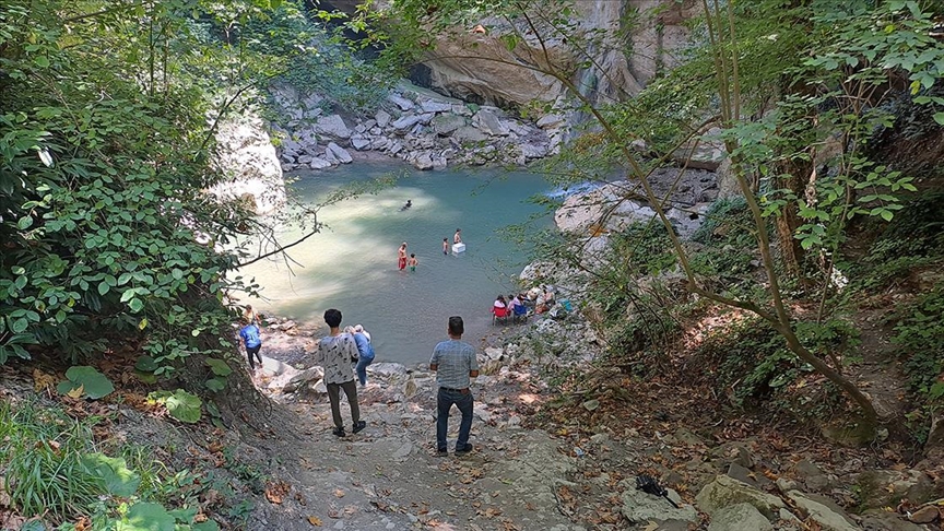 Havan sıcaklığının 30 dereceyi, nem oranının ise yüzde 80'leri geçtiği kentte serinlemek ve doğada vakit geçirmek isteyenler Maksudiye Mahallesi'ndeki şelaleye geliyor.