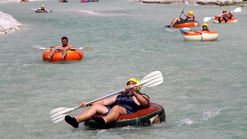 Su sporları yapmayı tercih edenler de Karaçay Nehri'nde rafting yapıyor. Rehber eşliğinde şişme botlara binen turistler nehrin akıntısına karşı koymak için mücadele veriyor. Raftingin ardından turistler, nehrin sonunda yapay olarak oluşturulan çamur banyolarında eğlenceli dakikalar yaşıyor.
