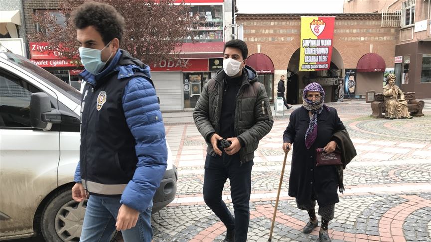 Polislerin yardımıyla ekip aracına binen ve Saraçlar Caddesi'ndeki PTT Merkez Şubesi'ne getirilen Kısaç, maaşını çektikten sonra evine götürüldü.