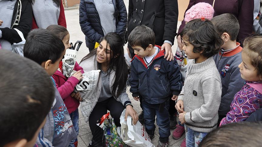 Öğrencilerden Tuba Akça, gazetecilere yaptığı açıklamada, yılbaşı öncesi Suriyeli çocukları sevindirmek istediklerini söyledi.