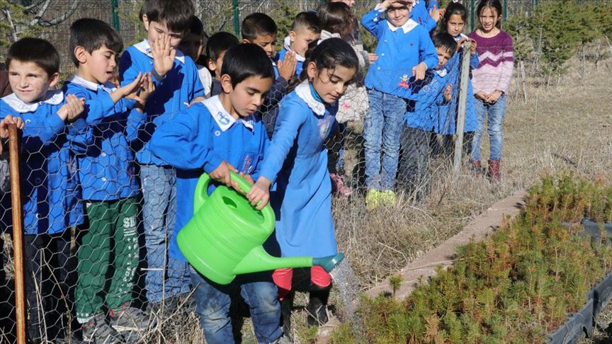 Hüseyin Demir İlkokulu Müdürü Muhammet Hasan Öztürk, AA muhabirine, öğrencilere ağaç sevgisini aşılamak ve ağaçların büyüme evrelerini göstermek amacıyla öğretmenlerle proje hazırladıklarını söyledi.