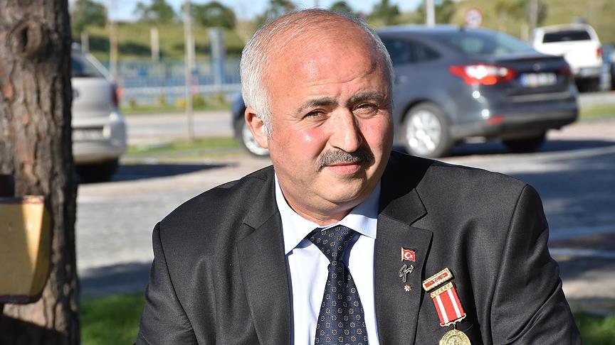 "Sol bacağımda oldukça yoğun şarapnel parçaları var. Şarapnel parçalarından dolayı bacağımı kaybetme durumu yaşadım. Ayağım iltihap yaptı. Çok uzun süren tedavi sonrasında sol ayağım düzeltildi. Yirmi yıl sonra MR'a girdiğimde omuriliğime yakın şarapnel parçası tespit edildi. Ben buradan GATA'ya gittim. 'Alamayız, çok riskli bölge' dediler. Şu an vücudumda şarapnel parçalarıyla yaşıyorum. Ben şunu söylüyorum; vatanımızın ha kuru ekmeğini yemişiz, ha bir kör kurşununu veya bir el bombasını... Bu vatan bize annelik yapıyor. Vatanımız, bayrağımız için ayağımız değil, gerekirse canımız da gidecek ama ay yıldızlı bayrağımız ebediyen dalgalanacak."