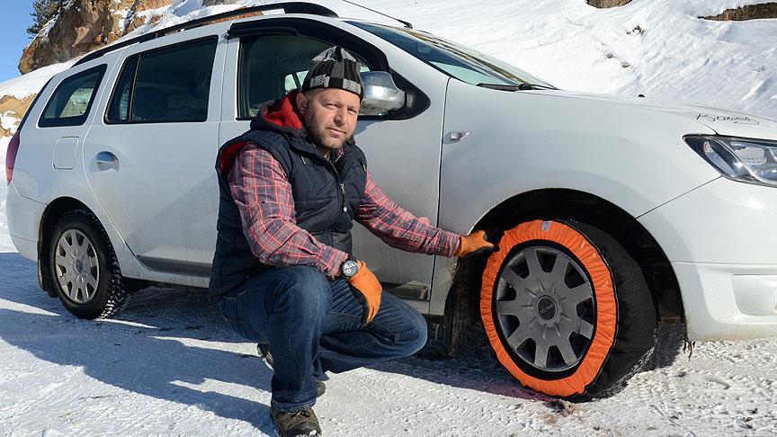 Doğu Anadolu Bölgesinde kar yağışı ve buzlanma nedeniyle araçlarını mevsim koşullarına adapte etmek ve kaymayı önlemek isteyen Sarıkamışlı sürücüler, lastiklere "kar çorabı" takmaya başladı.