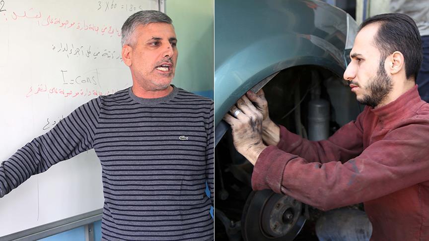 Ülkelerindeki iç savaştan kaçarak Diyarbakır'a yerleşen Suriyeli Macit Halil ve Mohamed Berken, öğretmenlik ve tamircilik olan mesleklerini sürdürüyor.