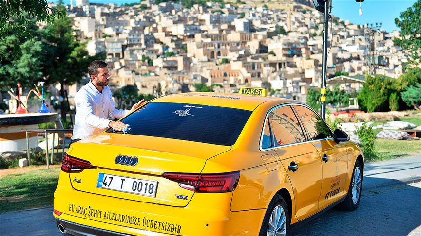 Şehit ailelerinden etkilenen Alpaslan, yeni aldığı aracının arkasına "Bu araç şehit ailelerimize ücretsizdir" yazdırıp, hem Mardin'deki hem de kenti gezmeye gelen şehit ailelerini ücretsiz taşıyor.