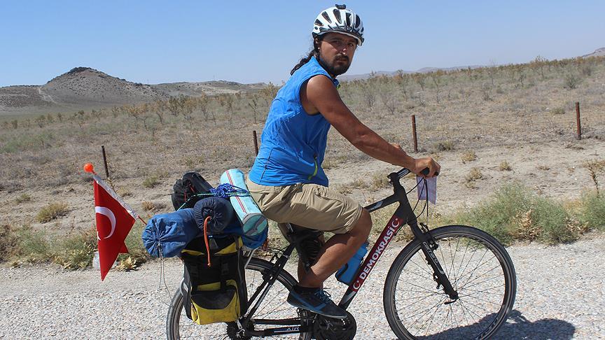 Fetullahçı Terör Örgütü'nün 15 Temmuz'daki darbe girişiminde şehit düşenler anısına 4 Ağustos'ta İstanbul Güngören'den bisikletiyle yola çıkan 28 yaşındaki Orhan Şentürk, Konya'nın Karapınar ilçesine geldi.