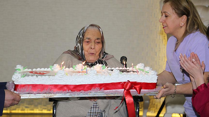 Müzik eşliğinde eğlenceli dakikaların yaşandığı doğum gününde, yaşamını tekerlekli sandalyeye bağımlı sürdüren Kaynar, 102. yaşı için hazırlanan pastayı kesti.