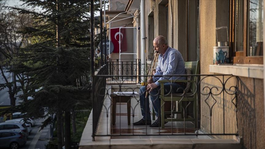 Yeni tip koronavirüs salgını sebebiyle 2 günlük sokağa çıkma yasağı ilan edilen Ankara'da Ali Yakar'ın balkonundan üflediği neyin sesi caddeleri huzurla doldurdu.
