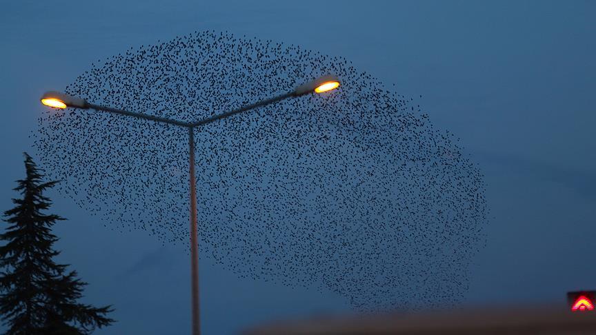 Farklı şekiller oluşturarak zaman zaman ayrılıp tekrar birleşen kuşların kent merkezinin farklı bölgelerine giderek dans edercesine uçması vatandaşlar tarafından ilgiyle izlendi.