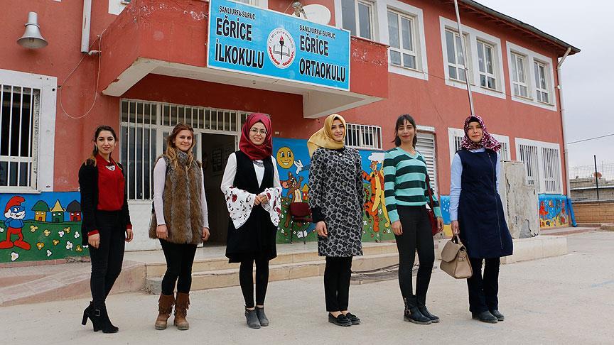 Türkiye'nin çeşitli illerinden Suruç ilçesinin Suriye sınırındaki Eğrice Mahallesi'ne gelen 9 kadın öğretmen, sayıları 200'ü bulan öğrenciyi geleceğe hazırlıyor.
