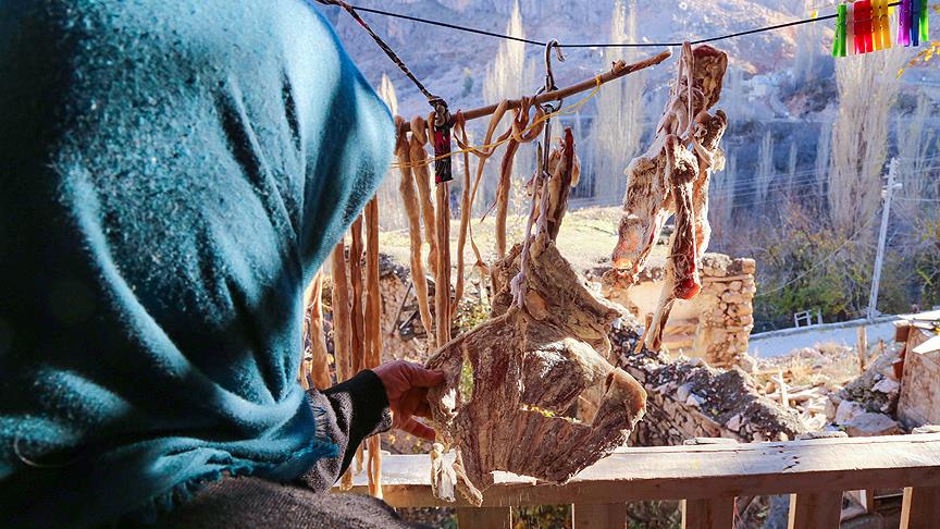 Küçükbaş hayvanın eti, tuzlanarak belirli süre bekletilmesinin ardından yaklaşık bir hafta kadar askıda kurutuluyor. Bu yöntemle farklı bir lezzet ve aroması olan et, genellikle yemeklere katılıyor. Yörede yaşayanlar, gıda endüstrisindeki gelişmelere rağmen, yemeklere verdiği lezzetten dolayı et kurutmaktan vazgeçmiyor.