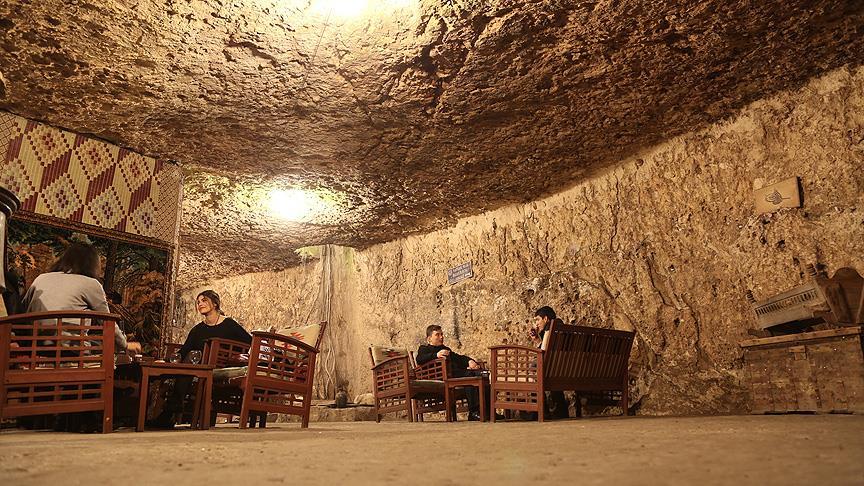 Gaziantep'te tarihi Yeni Han'daki yaklaşık 500 yıllık mağara, 15-20 derecelik ısısı ile kış mevsiminde ısınmak isteyen vatandaşların tercih ettiği mekanlar arasında yer alıyor.