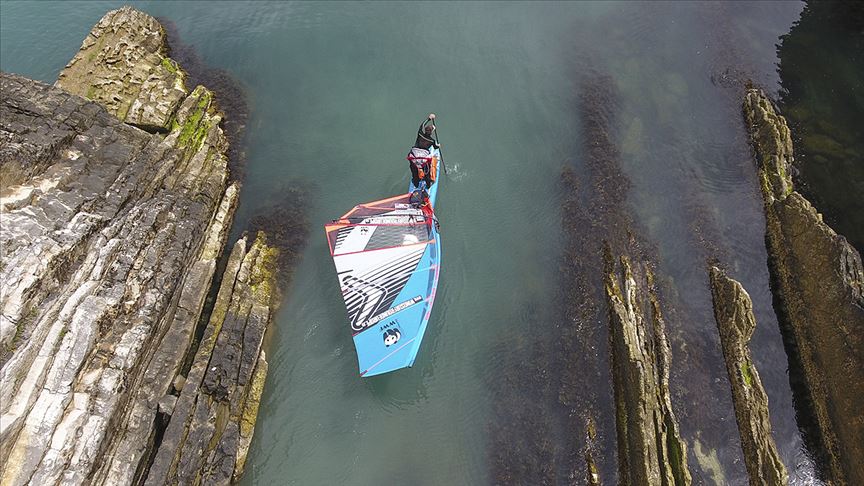 Abana'da mola veren Dunnett, AA muhabirine yaptığı açıklamada, rüzgar sörfüne küçük yaşlarda başladığını söyledi.