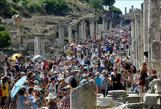 Öğle ve ikindi vakti turistlere İslamiyet hakkında sunum yapıyor