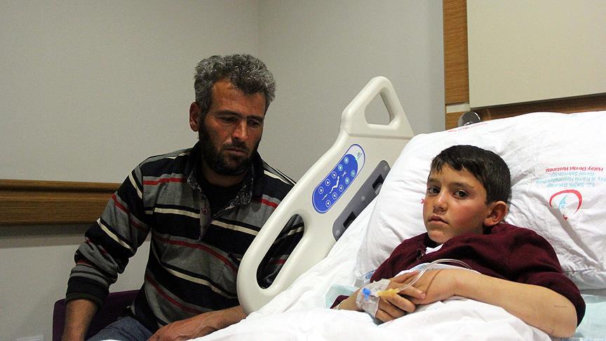 Suriye'de Esed rejiminin düzenlediği hava saldırısında iki bacağını kaybeden ve "Baba beni kaldır" feryadıyla yürekleri dağlayan 10 yaşındaki Abdülbasit'in tedavisi Hatay'da sürüyor.