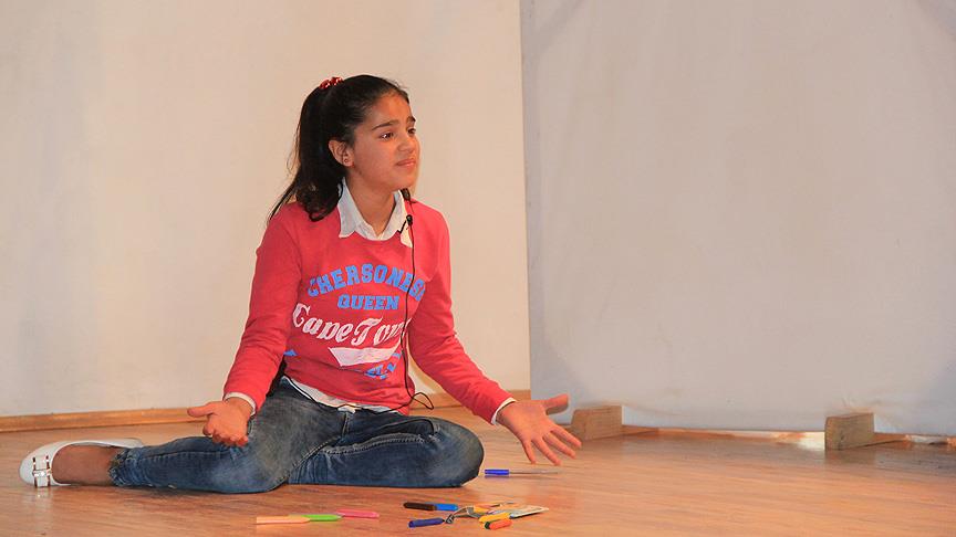 Adıyaman'da ülkelerindeki iç savaşı anlatan tiyatroyu sahneleyen Suriyeli çocuklar, duygulu anlar yaşadı.