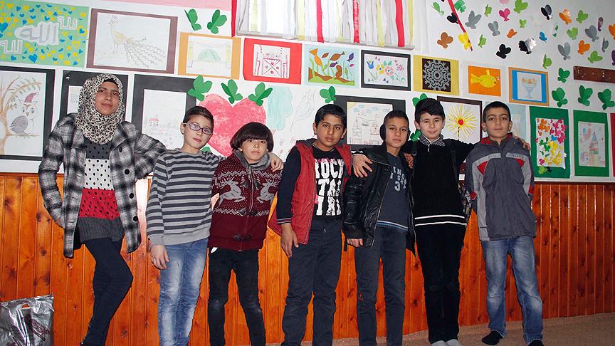 Suriye müfredatına uygun şekilde eğitimin verildiği merkezdeki sergide, çeşitli yaş gruplarından çocuklar duygularını, Türkiye'ye ve Türk insanına olan sevgilerini de oluşturdukları "Türkiye köşesi" ile dile getirdi.