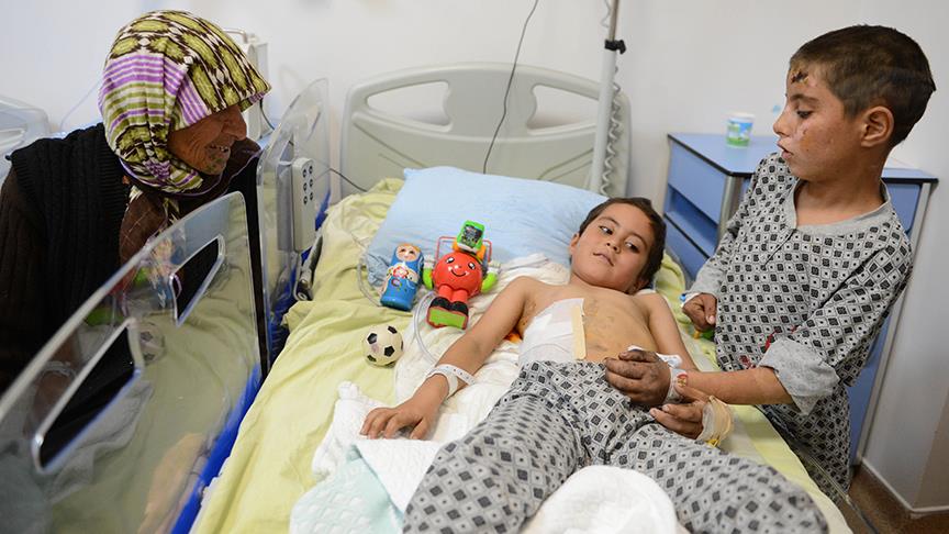 Suriye'nin Halep kentine bağlı Çobanbey ilçesinde bomba yüklü aracın patlatılması sonucu yaralanan 9 yaşındaki Fesal ve 8 yaşındaki Ahmet Delihassen, tedavi için getirildiği Kilis'teki yaşama tutundu.