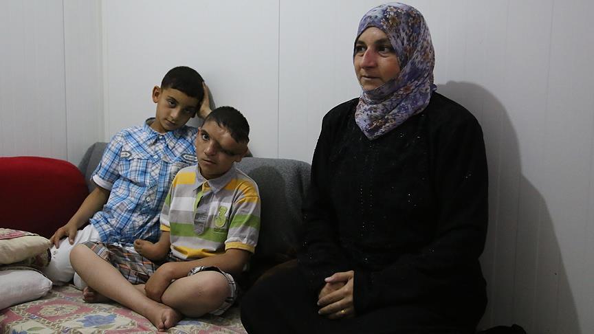 "Doğuştan bu şekilde. Suriye'de bir ameliyat yapıldı ama sağ kolu felç oldu. Şimdi Türkiye'de tedavisi sürüyor. Ankara'da ameliyat olacak. Bu şekilde günleri çok zor geçiyor. Okulda özellikle çocuklar dalga geçiyor, garip bakıyorlar. Sürekli gözü açık, sulanıyor. İnşallah Türkiye'de sağlığına kavuşacak. Temennim oğlumun bir an önce iyileşmesi. Oğlumun tedavisi için yanında duran herkese teşekkür ediyorum."