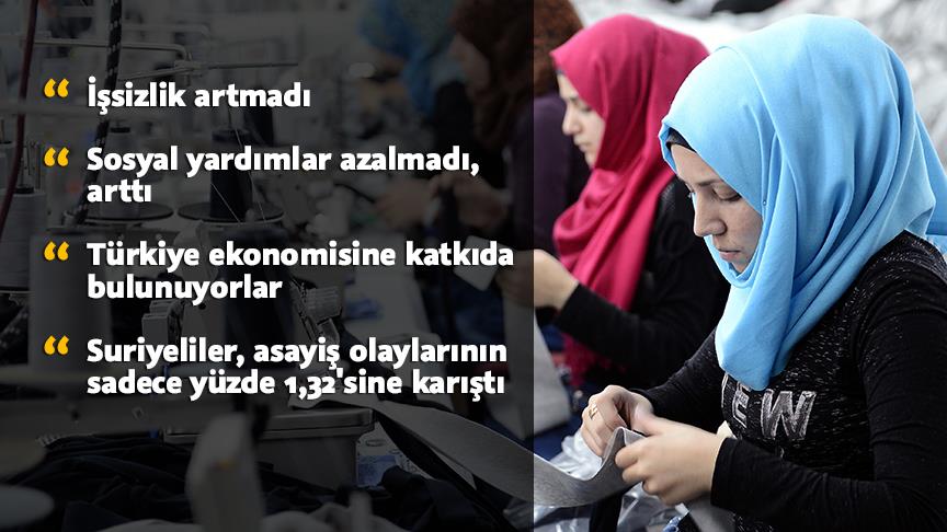 Rapora göre, Suriyeliler devletten ve vatandaşlardan sadece yardım alan kişiler değil ve Türkiye ekonomisine önemli ölçülerde katkıda bulunuyor. Suriyeli yatırımcılar, son 3 yıllık dönemde Türkiye’de açtıkları anonim ve limited şirketler aracılığıyla önemli miktarda yabancı sermayeyi Türkiye ekonomisine kazandırdı.