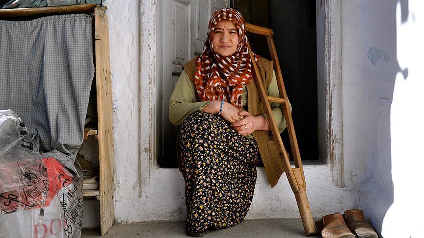 Alibaba Mahallesinde yaşayan Şemsi Koç (55), 6 yaşında geçirdiği bir rahatsızlık sebebiyle sol bacağını kaybetti. 27 yıllık evli ve bir çocuk annesi olan Koç, yarım asırdır tahta koltuk değneği kullanarak bir taraftan kendi ihtiyaçlarını karşılamaya çalışıyor, bir taraftan ailesi için ev işlerini yürütmeye gayret ediyor.