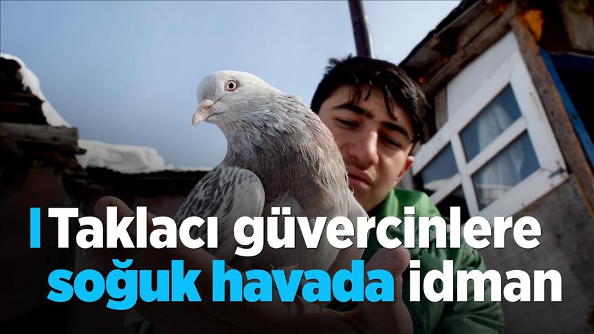Doğu Anadolu Bölgesi'nde etkili olan soğuk hava nedeniyle kafeslerde beslenen taklacı güvercinlerin hareketsiz kalmaması için meraklıları, kuşlara soğuk havada antrenman yaptırıyor.