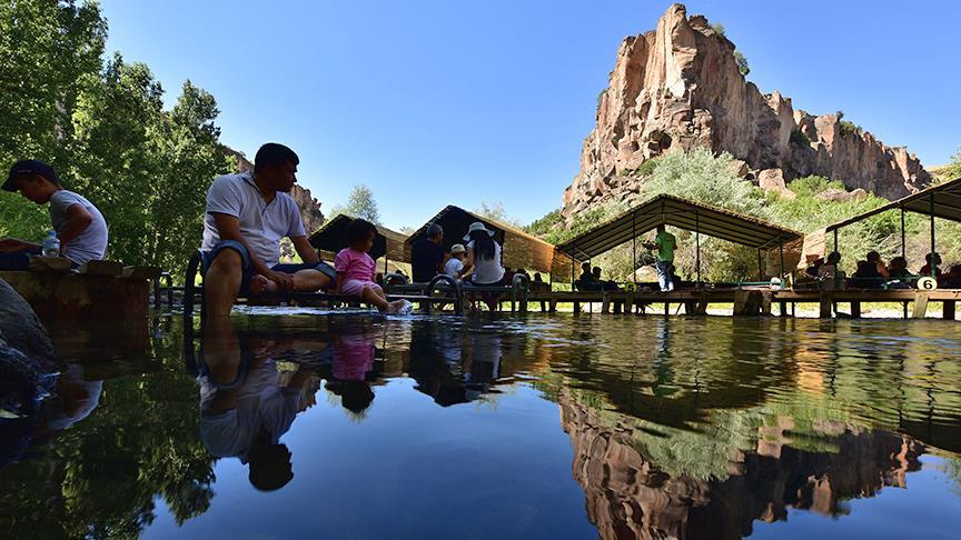 Yorgunluklarını vadinin ortasından geçen Melendiz Çayı'nın kenarında dinlenerek atan turistler, vadi içerisindeki tarihi ve doğal güzellikleri fotoğraf karelerine yansıtarak ölümsüzleştiriyor.