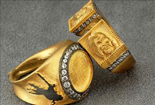 "Ayasofya'nın tamamını da nakşettik. Kabe, su üzerinde bir kuğu, çift lale, üç boyutlu gül, Ortaköy Camisi, Bursa'daki Yeşil Türbe gibi birçok figürün nakşedildiği yüzükler hazırladık. Örneğin Bursa'daki Ulu Cami, çok kubbeli olduğu için taş içinde kendini fazla göstermiyor. Seçimlerimizde bu gibi bilgiler de önemli oluyor. Önemli olan, eserin kaç günde ortaya çıktığından çok taşın kırılma olasılığıdır. Taş kırılırsa bu iş bir hafta sürer, tekrar başlarsın. Ters taş oyma mimarisi işini Türkiye'de pek yapan yok."