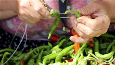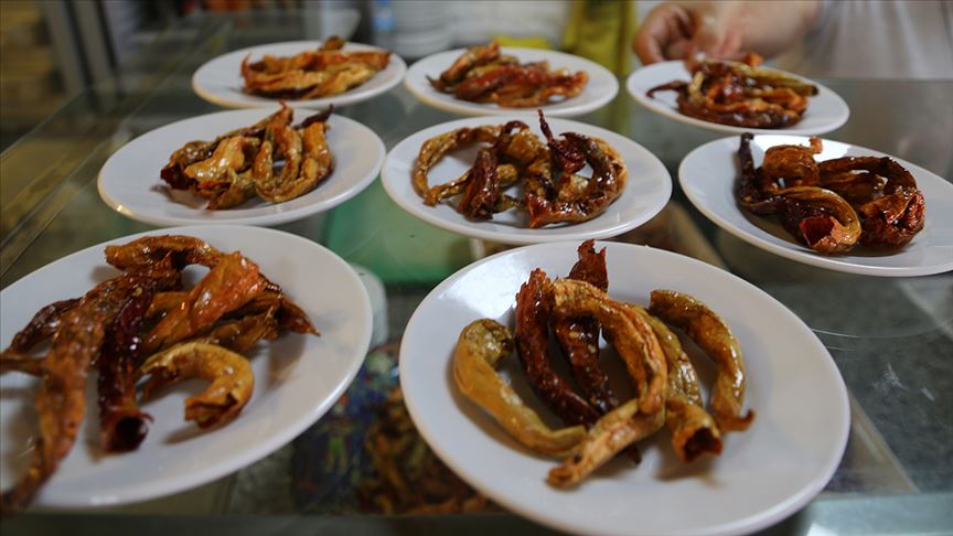 Tarladan toplanması sonrası iki ayda kurutulan acı biberler, yağda kızartılarak müşterilere sunuluyor.