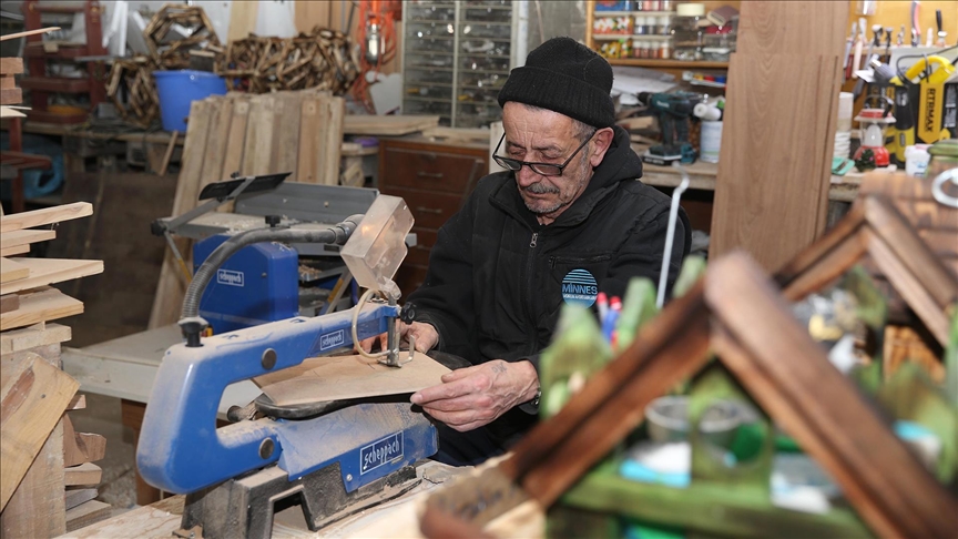 Anlık gelişmeler için AA Canlı Çarşı Mahallesi'ndeki evinin bodrum katında kurduğu atölyede çalışmalarına başlayan Topçu, ahşaptan ürettiği ilk oyuncakları mahalledeki çocuklara verdi.