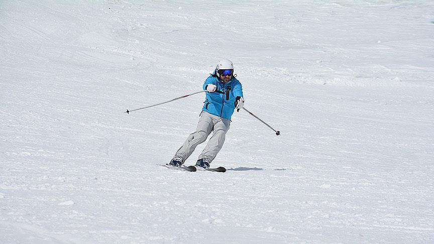 Bitlis'in Tatvan ilçesindeki Nemrut Kayak Merkezi'ne gelenler, Van Gölü ve Süphan Dağı manzarasına karşı kayak yapmanın keyfini yaşıyor.