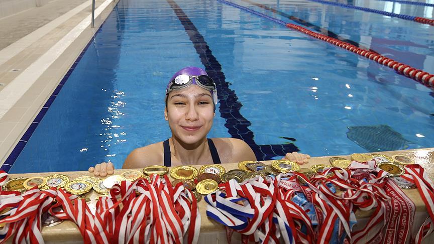 "44 birincilik olmak üzere 79 madalyam var. Hedefim olimpiyatlara katılmaktır. Yüzme hocalarımla ilişkilerim çok iyi. Haftada 6 gün çalışıyorum. Bir taraftan okula devam ederken, diğer taraftan da yoğun bir antrenmanla yüzmeye devam ediyorum. Hedefim olimpiyatlara katılıp şampiyon olmak ve bayrağımızı göndere çektirmek."