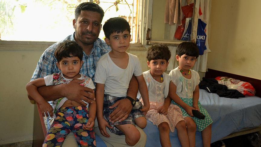Reyhanlı'da, Suriyeliler için kiralanan evde 20 kişiyle beraber kalan Ali, çocuklarına hem annelik hem de babalık yapmaya çalışıyor.