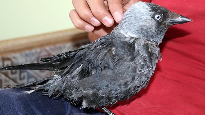 Tek ayağı ve kanadı olmayan kargaya ''Garip'' ismini veren Kurt, iyileştirdiği ve bakımını üstlendiği kuşu evin bir üyesi gibi görüyor.