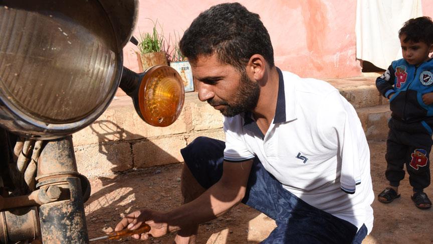Suriye'de Beşşar Esed rejiminin gerçekleştirdiği infazlarda babası ve ailesinden 4 kişiyi kaybeden Abdürrezzak Ahmet Cemrek, İdlib'de sığınmacı kampında yaşayan ailesinin geçimini tek koluyla motosiklet tamirciliği yaparak sağlamaya çalışıyor.