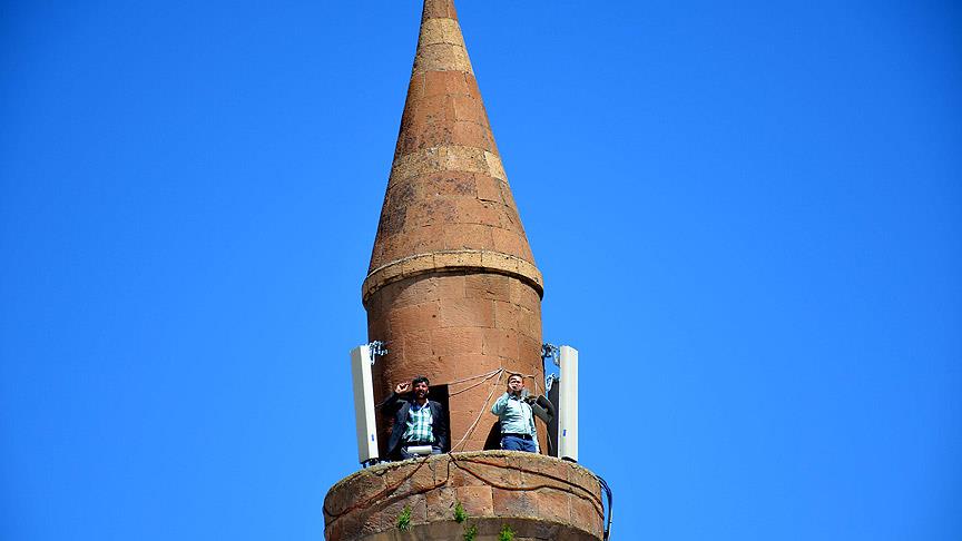 Baz istasyonundan kaynaklı şebeke sıkıntısı yaşanan köyde, telefonla konuşmak için minareye çıkanlar, artık köylüler tarafından yadırganmıyor.