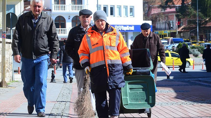 Ayşe teyze, mesai bitimine kadar bir elinde süpürge, diğer elinde kürekle işini en iyi şekilde yapmaya gayret ediyor.