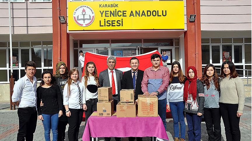 Karabük'ün Yenice ilçesindeki Anadolu Lisesi öğrencileri, Güneydoğu'da terörle mücadele eden güvenlik güçleri için mektuplar yazarak, ailelerine yöresel yiyecekler hazırlattı. Öğrenciler, mektuplarının ve yiyeceklerin bulunduğu kolileri güvenlik güçlerine ulaştırması için, daha önce okullarından mezun olan ve Diyarbakır'ın Sur ilçesinde görev yapan uzman çavuşa gönderdi.