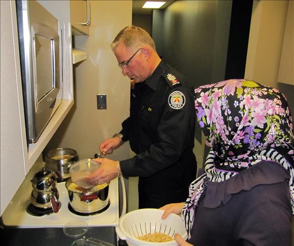 Toronto polisinin, Hanna caddesindeki tesislerinin mutfağında sabah erken saatlerde bir araya gelen Toronto Emniyet Müdür Yardımcısı Jeff McGuire, Toronto Trafik Müdürü Robb Knapper ve birim amirleri, Ayşe Yegül ve Nurdan Balıkçı ile birlikte aşure hazırlığına başladılar.