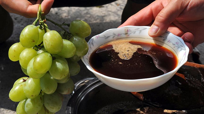 Soğuk kış günlerinin vazgeçilmez besinlerinden üzüm pekmezi, kadınların zorlu emekleriyle hazırlanıyor.