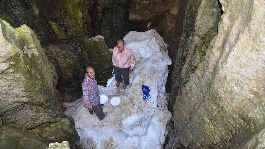 Soğutucuların, buzdolabının bulunmadığı yıllarda, kavurucu yaz sıcaklarında yiyecek saklanan Toroslardaki içi kar dolu obruklar, Antalya'nın Akseki ilçesinde kullanılmaya devam ediyor.