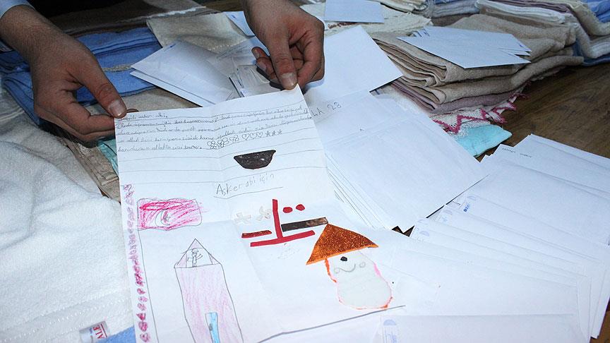 Diyarbakır'a iki arkadaşıyla gelen Ali Zeyrek, terör örgütü PKK mensuplarına yönelik operasyonların sürdüğü Sur ilçesinde görev alan 7. Kolordu Komutanlığında görevli askerlere, Trabzon'dan getirdikleri mektup ve havluları verdi.