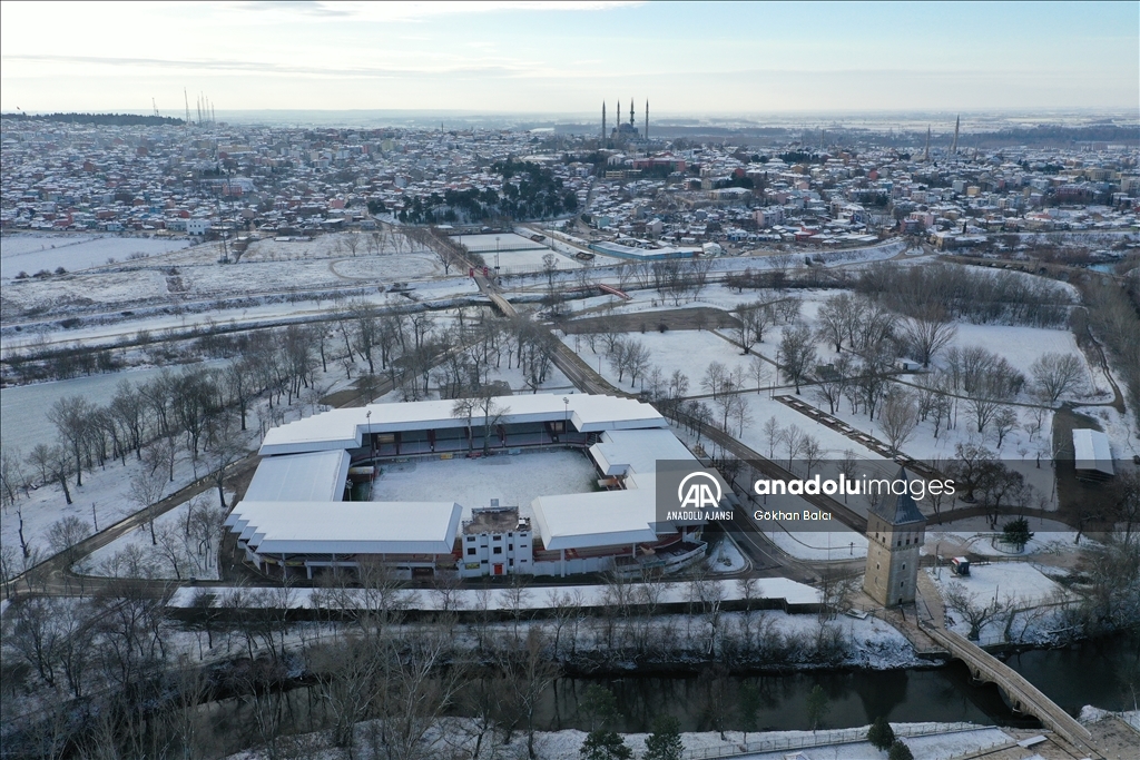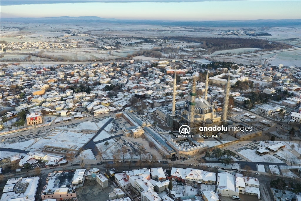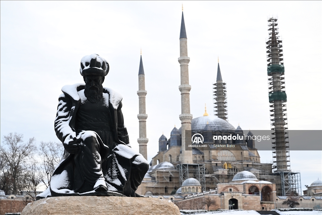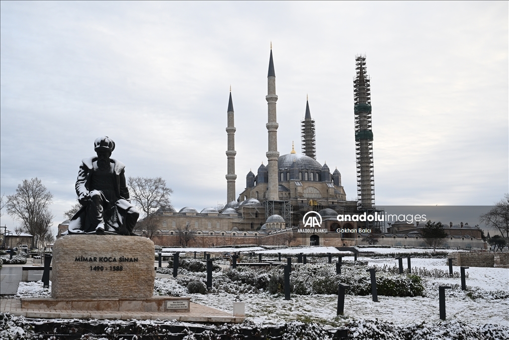 Selimiye Camisi başta olmak üzere tarihi eserler karla kaplandı.