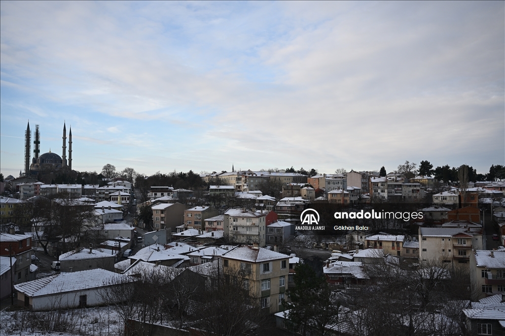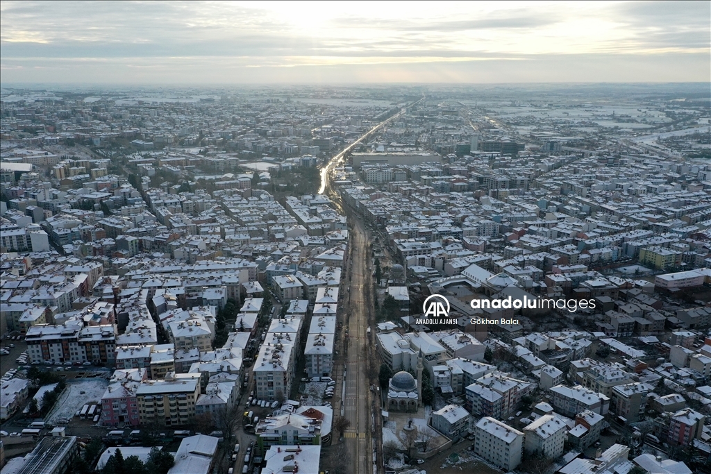 Edirne'de dün öğlen başlayan ve akşam saatlerine kadar etkili olan kar, kenti beyaza bürüdü.