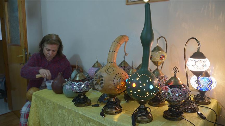 Kırklareli'nde yaşayan İlknur Martin, eski dönemlerde su kabı olarak kullanılan ve "susak" olarak bilinen su kabağını işleyerek, gece lambası, avize ve süs eşyasına dönüştürüyor.